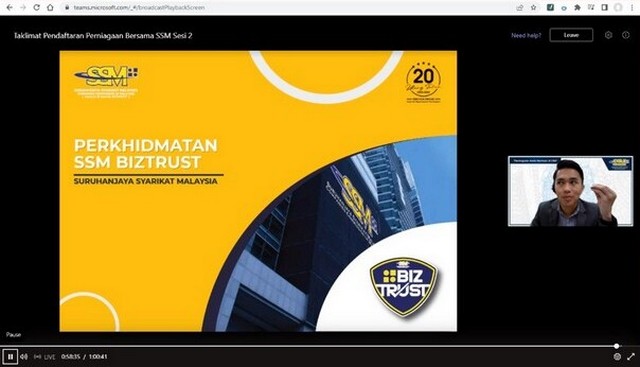Objektif taklimat tersebut adalah untuk berkongsi maklumat berkaitan Pendaftaran Perniagaan. Antara topik yang dikongsikan adalah berkaitan pengenalan dan fungsi SSM, jenis-jenis entiti perniagaan, SSM BizTrust, produk SSM, tutorial pendaftaran serta pengaktifan ID pengguna di EzBiz Online.