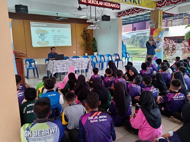 17 Julai 2025 | Aktiviti TerkiniPada 16 Julai 2025, telah berlangsung Kempen Internet Selamat bersama pelajar Sekolah Kebangsaan Jejawi. Program ini berlangsung di Dewan Terbuka SK Jejawi bermula pada pukul 10:00 pagi sehingga pukul 12:00 tengah hari. Tujuan program ini diadakan adalah untuk memberi kesedaran mengenai Kempen Internet Selamat dalam kalangan pelajar sekolah rendah.
