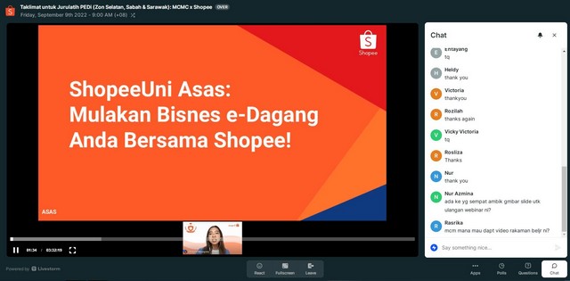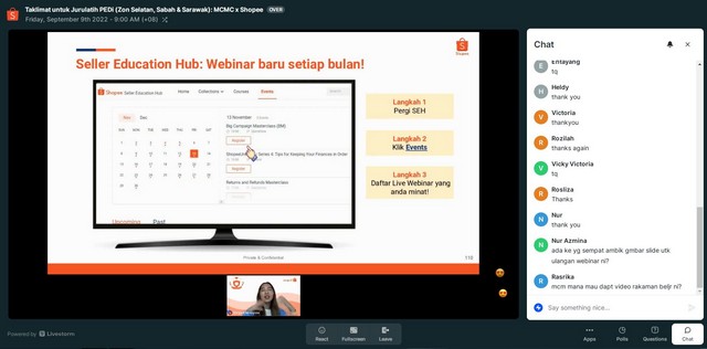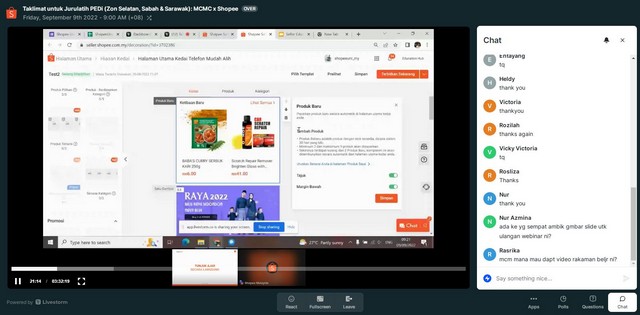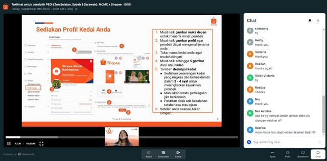 10 September 2022 | Aktiviti TerkiniPada 09 September 2022 jam 09.00 pagi hingga 12.00 tengahari telah berlangsungnya satu Program PUPUK@Shopee 2022 Campaign – Online Training/ Webinar di Pusat Ekonomi Digital Pokok Jawi. Program ini dijalankan bertujuan untuk mengajar peniaga onlie bagaimana untuk memulakan jualan di Shopee dengan rangkuman asas perniagaan dari membuat kedai Shopee, pemasaran untuk meningkatkan lalu lintas dan memenuhi pesanan. Kelas ini juga dapat membantu pihak Pengurusan PEDi dalam menambahkan ilmu berkaitan Shopee untuk disampaikan kepada komuniti setempat. Program ini mengambil masa selama 3 jam.